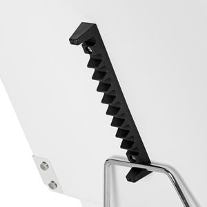 Thanks to the semi-matte finish and the streamlined legs, the metal frame looks elegant and does not overwhelm the space. The base of the chair does not allow to adjust the height of the seat, but it is at a height that should be comfortable during use. The seat is filled with foam and covered with imitation leather in shades of white. Thanks to the use of such material, the equipment is comfortable to use, resistant to moisture and easy to clean. give the seat an ergonomic shape. Simple design and classic colors allow it to fit into any interior.
