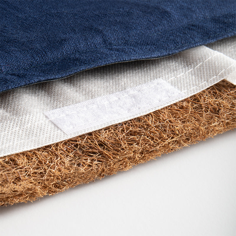 the mat is made of high quality materials, all the elements used are anti-allergic elements. the cover of the mat is made of high quality 100% natural linen, inside the mat has a thick insert made of natural coconut fiber, thanks to which the mat is natural and ecological. the fiber is latexed, so it does not absorb moisture, and the cartridge remains hygienic.