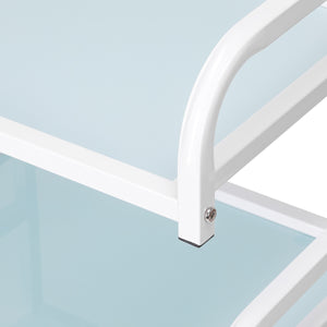 The frame made of durable aluminum in shades of white and the glass shelves create a modern and aesthetic whole that is easy to keep clean. Four wheels ensure mobility for easy organisation of the workspace, while solid materials guarantee stability and durability of use.