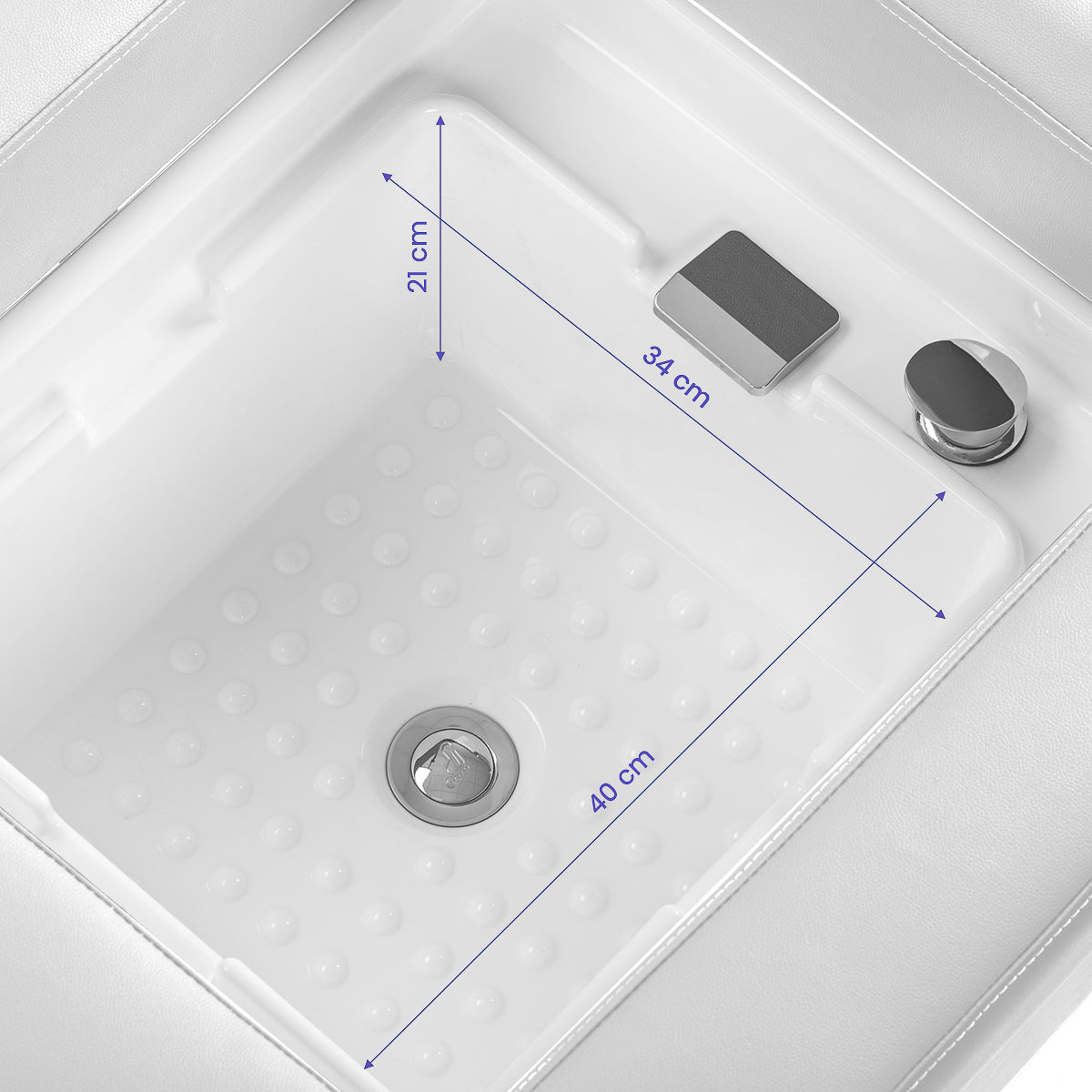 A deep ceramic bowl in shades of white effectively reduces splashing of water and products used during treatments, ensuring cleanliness and comfort of work. Made of durable material, the bowl is resistant to discolouration, scratches and damage, and its smooth surface makes cleaning exceptionally easy. Its distinctive profile not only facilitates access for the person performing the service but also gives the wash unit an elegant and modern look. The combination of aesthetics and functionality elevates the standard of any professional space.