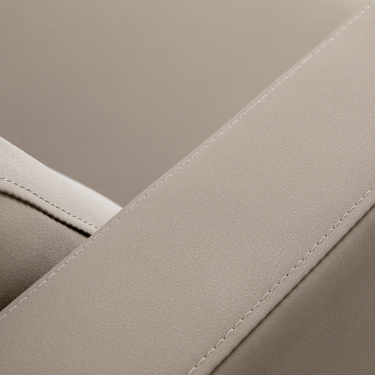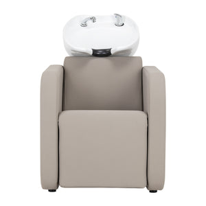 The Gabbiano Sylvia hairdressing wash station has been designed with the aim of comfortably performing care or colouring treatments in mind, as well as providing the client with a comfortable position during longer procedures. It catches the eye with its simplicity and geometric form, while the perpendicular lines of the seat and armrests give it a modern feel. The backrest placed at an optimal angle promotes excellent support for the spine. The appropriately profiled seat filled with durable foam ensures high comfort of use, and the upholstered armrests allow for the correct positioning of the client's shoulders. The synthetic leather cover in shades of beige guarantees many years of durability and ease of cleaning. The elegant, minimalist look of the wash station gives the interior a unique touch. The set includes complete fittings in shades of chrome, including a faucet, shower head and dedicated hoses to provide a complete set of tools for work.