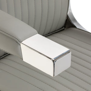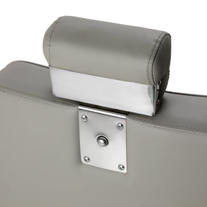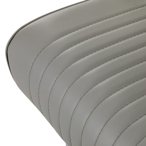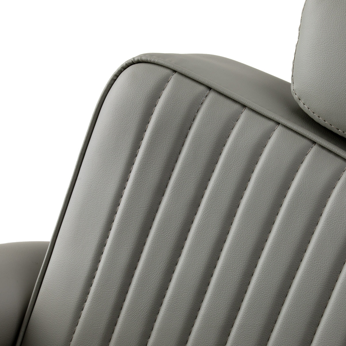 Sturdy base construction ensures stability and high comfort. The seat is filled with deformation-resistant foam and upholstered with soft, matt synthetic leather, combining durability with comfort. The materials used for the finish are moisture-resistant, durable and easy to clean, making the chair perfect for everyday use. Stylish stitching and upholstery in shades of grey give it a unique character, blending perfectly with the décor of modern barbershops.