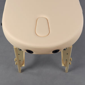 The table is designed to ensure a comfortable massage experience and easy access to the patient. The raised plywood connecting the legs facilitates facial and foot massages, while the rounded tabletop improves accessibility. The table is refined in every detail.