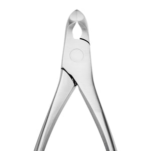 The massive, curved blades are perfect for cutting even tougher cuticles or nails. Their shape makes it easier to perform treatments even in hard-to-reach areas. The jaws of the nippers are connected by the Lap Joint method, so they connect perfectly during use, which ensures extremely precise cutting. The pliers have a matching blade cover.