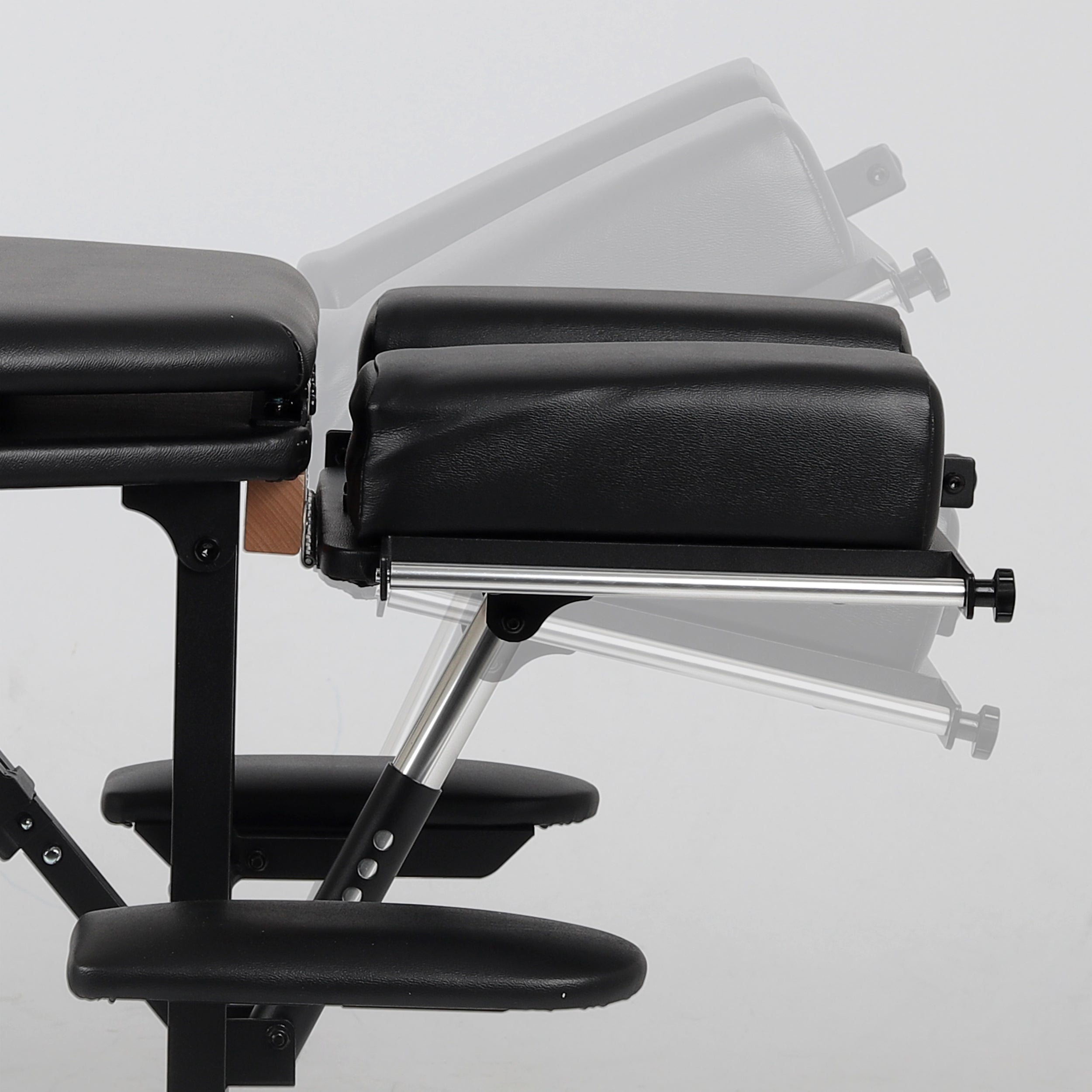 Professional, foldable table for physiotherapy, manual therapy, osteopathy, and elements of chiropractic, ensuring proper ergonomics during massage. It features advanced adjustment options, comfortable foam, and a stable leg structure. Thanks to its appropriate weight, it is convenient to transport.