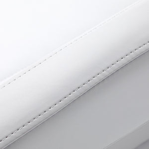 The robust construction of the chair ensures stability and durability during everyday use. The seat is filled with foam of appropriately selected hardness to guarantee comfort even during prolonged treatments. The pleasant-to-touch imitation leather upholstery in shades of white gives the chair a professional appearance, while being moisture-resistant and easy to clean. The durable base guarantees stability, while the carefully contoured hems emphasise the modern character of the furniture and enhance the ergonomics of the seat.