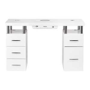 The Momo L03 cosmetic desk with absorber is a combination of functionality and minimalist design, created for professionals who value comfort and aesthetics. The simple, elegant form gives it a modern feel, while the wide, high-gloss top provides comfort during daily treatments. Cable grommets help keep the workstation tidy. The stable construction and spacious drawers allow tools, products and accessories to be organised efficiently, increasing productivity and comfort.