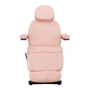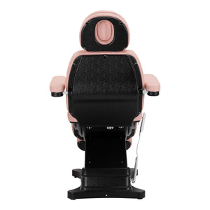 The chair is filled with contoured foam and covered with pleasant-to-touch synthetic leather in shades of pink. The material used makes the equipment easy to clean, as well as resistant to moisture and selected disinfectants. A solid base made of durable material in shades of black ensures stability during treatments. Properly profiled hems give the chair a stylish look and make the seat ergonomic. Minimalist, simple design and classic colors allow it to fit into any interior.