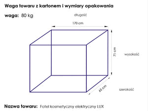 Full remote control makes the work easier. The seat cover is easily washable, made of eco-leather that meets the stringent EU requirements. In addition, the armrests are finished with wood, easily removable if necessary, and the hole in the headrest allows for massage. An additional advantage is a heated mattress, which allows for unusual relaxation for the client.