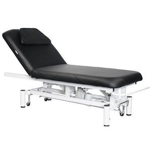 high performance couch, especially for physiotherapy treatments. equipped with 1 motor, the height is electrically adjustable, the backrest and the inclination are manually adjustable. the headrest is a cushion with a vent.