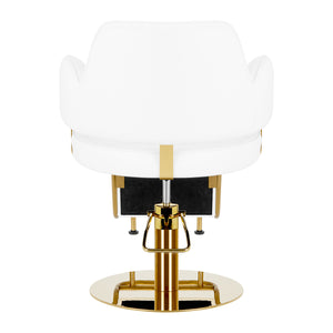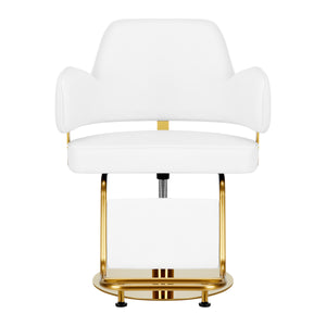 The comfortable piece of furniture is filled with durable, deformation-resistant foam, and the upholstery is made of pleasant-to-touch synthetic leather. The materials used ensure comfortable use of the furniture for a long time and make the equipment resistant to moisture, durable and easy to clean. The covering in shades of white and gold-colored decorative elements give it an expression of timeless elegance. The Gabbiano Linz NQ hairdressing chair is distinguished by a minimalist design, which gives it a unique character and makes the chair look great in many elegant salons.