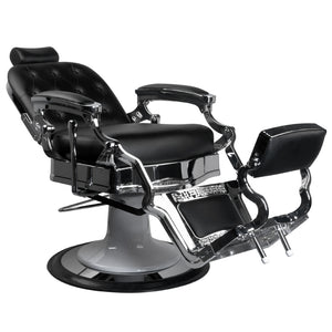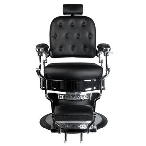 The solid construction of the base ensures stability and high comfort of use. The seat filled with durable, deformation-resistant foam and upholstered with pleasant-to-the-touch synthetic leather resistant to abrasion and easy to care for ensures long-term durability of the furniture and comfort at the highest level. The materials used make the chair resistant to moisture, durable and easy to clean. Stylish upholstery in shades of black, decorative quilting with buttons on the backrest and an elegant footrest give the chair a unique character. Its design, inspired by the vintage style, fits perfectly into the atmosphere of classic barber shops, emphasizing their unique atmosphere. The refined details, original texture of the upholstery and a massive base ensure not only aesthetics, but also maximum stability. This is a combination of elegance and functionality that will meet the expectations of even the most demanding professionals.