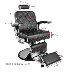 The durable hydraulic lift allows for adjustment of the seat height in the range of 60-78 cm, even when the client is in the chair. This allows the barber to adjust its level to his own height, which ensures more ergonomic and comfortable work. The chair is equipped with a reclining backrest and adjustable footrest, which allows the client to be placed in a comfortable, semi-reclining position, for easy access during treatments. Additionally, the extendable headrest provides optimal head support, allowing adjustment to individual needs.