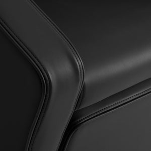 The Gabbiano Emma hairdressing wash unit is designed to ensure comfortable performing of care and coloring treatments and providing the client with a comfortable position during long procedures. The backrest placed at an optimal angle promotes excellent spine support. The appropriately profiled seat filled with durable foam provides high comfort of use, and the upholstered armrests ensure correct positioning of the client's shoulders. The synthetic leather cover in shades of black guarantees long-term durability and ease of cleaning. The slim design of the wash unit fits perfectly into the elegant interiors of hairdressing salons. The set includes complete fittings in shades of black and chrome, including the faucet, showerhead, and dedicated hoses to provide a complete set of work tools.