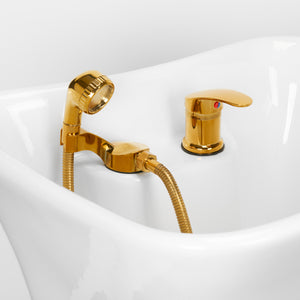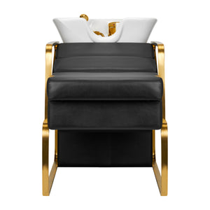 The modern Gabbiano hairdressing car wash combines functionality with Italian elegance. The car wash is made of the highest quality materials and perfectly finished. We know how important the client's comfort is during treatments, which is why the special design provides the client with a solid head support while washing. The soft and extremely comfortable seat is covered with high-quality gray eco-leather. The car wash has a white ceramic bowl and golden armrests. The perfect piece of furniture for modern interiors.