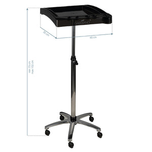 black hairdressing assistant. stable construction will ensure long-term use. table mounted on wheels, thanks to which the tools will always be at hand.