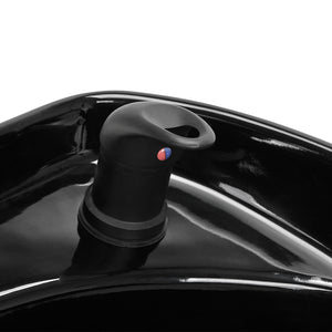 The black ceramic basin bowl with the appropriate depth prevents excessive splashing of water and products used during the treatment, allowing for comfortable performance of a wide range of services. The ability to adjust the angle of the bowl allows for adjusting the setting to individual needs. The material used makes the washbasin durable, resistant to stains and scratches, and very easy to clean. A properly profiled collar provides support and comfort during hair washing, and with the comfortable plastic cover, the customer will not feel the unpleasantness associated with the cold ceramic surface.