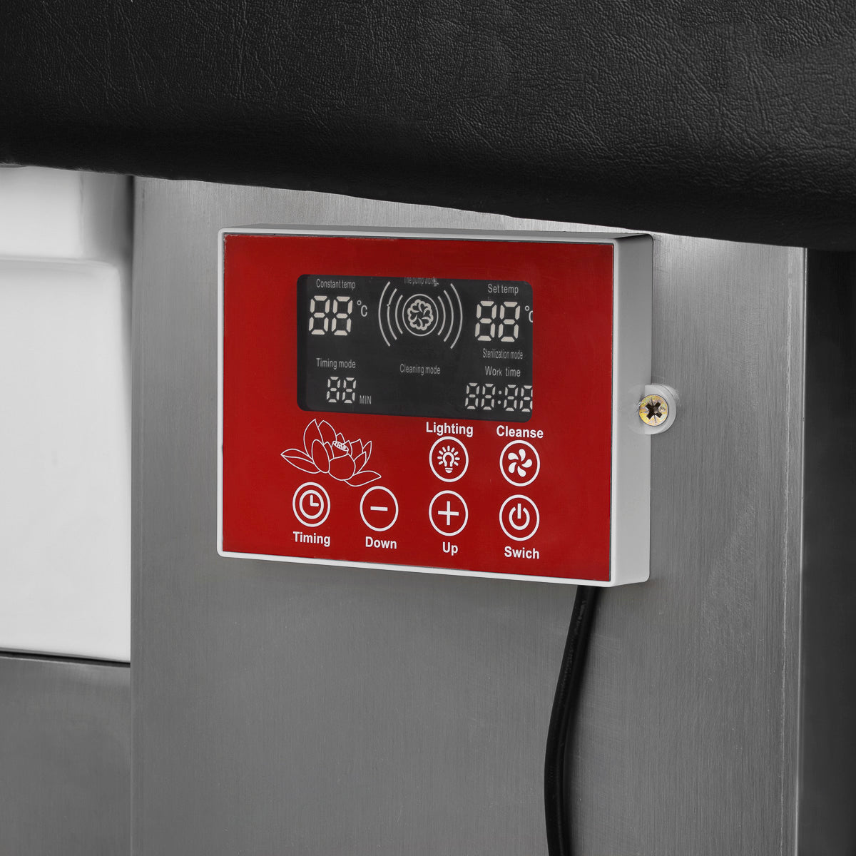 The intuitive touch panel provides full control over the wash unit functions. It allows you to adjust the operating time and water temperature, as well as monitor their current values. Thanks to the built-in display, you can check how long the device has been working at any time. The panel also allows you to activation of the light therapy function, i.e. illumination of the bowl, creating an atmosphere of relaxation and luxury. Additionally, the steam therapy device is equipped with a remote control, enabling convenient remote operation.