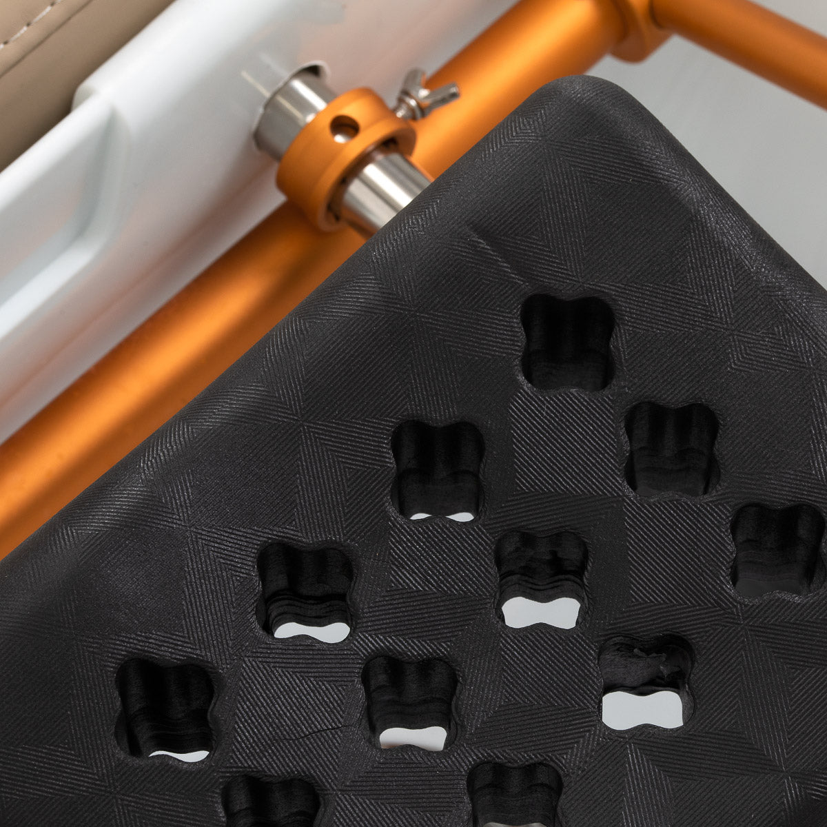 The adjustable headrest, with the option of extending and changing the angle of inclination, allows for a perfect adjustment to the user's needs, ensuring maximum comfort. The set also includes ergonomic cushions, including a headrest with a face opening, which expands the range of applications – from scalp treatments to massages and various body and facial therapies. These practical features make the lounger a versatile piece of equipment for beauty and wellness salons, combining customer comfort with the functionality needed by the professional.