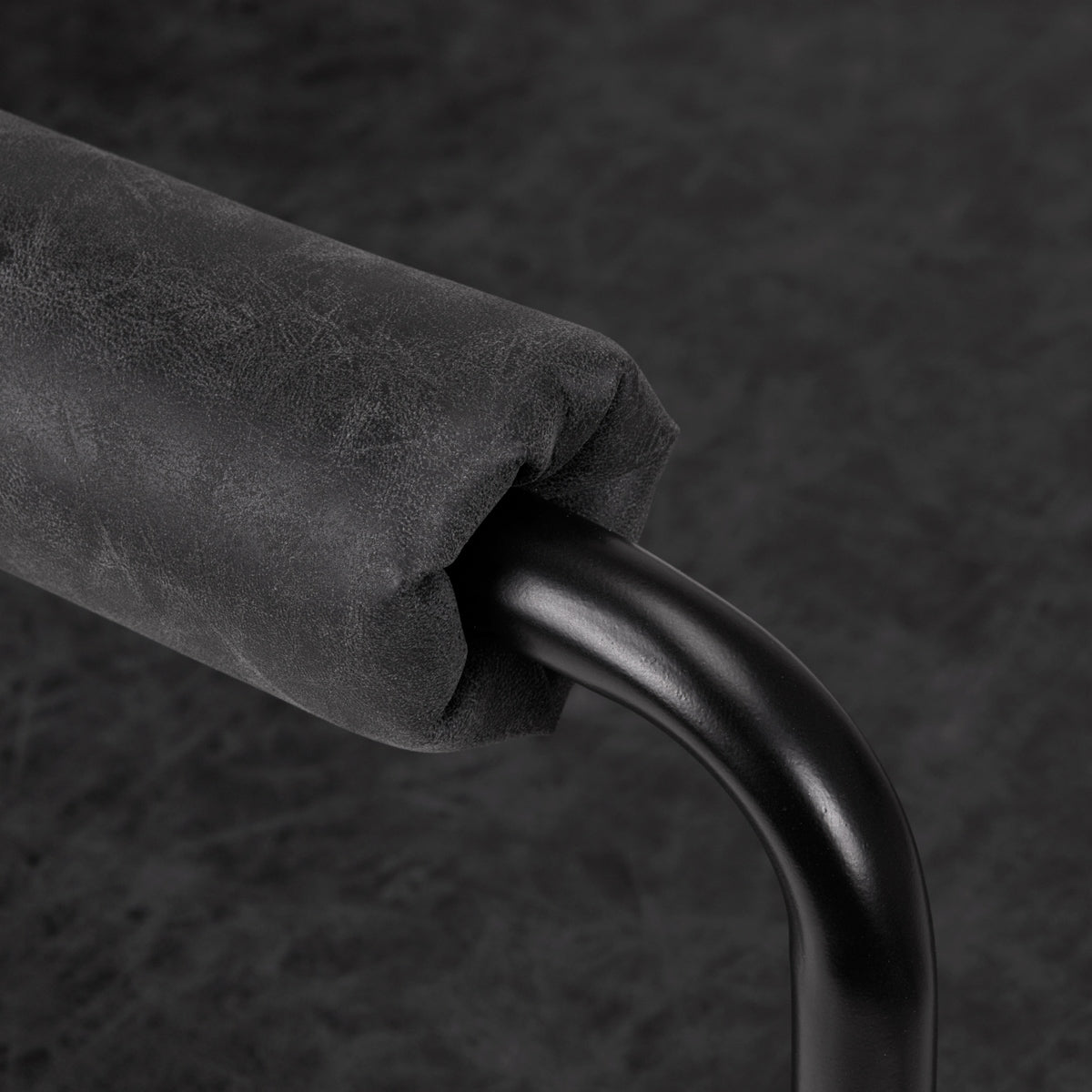 Loft-style piece of furniture is filled with durable, deformation-resistant foam, and the upholstery is made of pleasant-to-touch synthetic leather in shades of black. The materials used ensure comfortable use of the furniture for a long time and make the equipment resistant to moisture, durable and easy to clean. Metal elements in shades of black give it an expression of raw elegance. The modern Gabbiano Katania Loft hairdressing chair is distinguished by a minimalist design, which gives it a unique character and makes the chair look great in many hairdressing salons.
