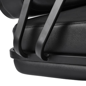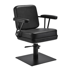 The profiled chair provides lumbar support and high comfort of use, while the upholstered armrests allow for the correct positioning of the client's shoulders. The stable, square base in matte black emphasises the stylish look, and the pleasant-to-touch synthetic leather in shades of black guarantees comfort during long treatments, durability, moisture resistance and ease of cleaning. The modern design gives the interior a unique character, and the chair works well in both modern and classic arrangements, emphasising the professional image of the salon.