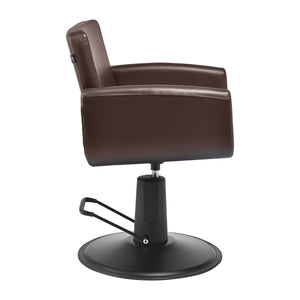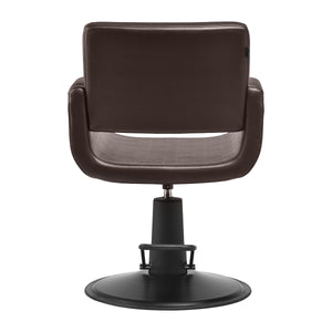 The Gabbiano Mataro hairdressing chair combines modern simplicity with functionality. Its subtly rounded lines give it a lightness, while the stable, round base in matte black emphasises its professional look. The seat, finished with soft-touch synthetic leather in shades of brown, ensures comfort even during long treatments. Carefully selected materials ensure durability, moisture resistance, and ease of cleaning. The chair fits perfectly with both modern and classic interiors, emphasising the style and character of the salon.