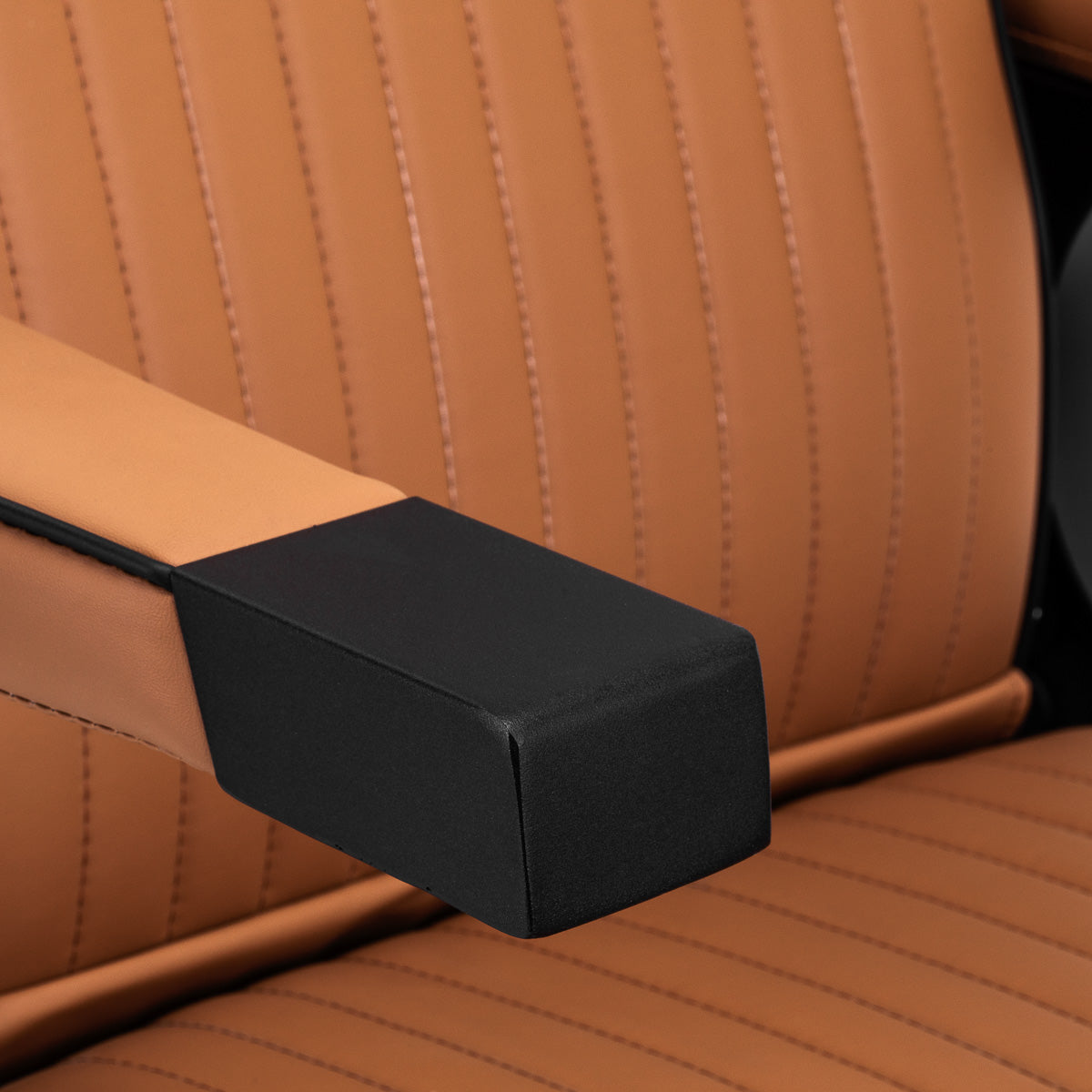Sturdy base construction ensures stability and high comfort. The seat is filled with deformation-resistant foam and upholstered with soft, matt synthetic leather, combining durability with comfort. The materials used for the finish are moisture-resistant, durable and easy to clean, making the chair perfect for everyday use. Stylish stitching and upholstery in shades of brown give it a unique character, blending perfectly with the décor of modern barbershops.