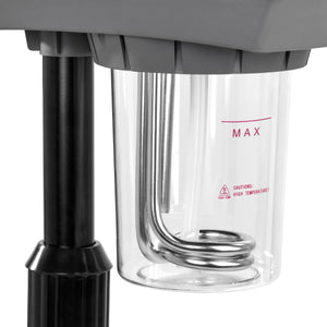 The vapozon is made of plastic in shades of black, which makes the device easy to keep clean. The stand is equipped with an easy height adjustment in the range of 78-95 cm, allowing the equipment to be positioned at the appropriate level to ensure the comfort of work for the person performing the treatment. The steamer nozzle can be rotated, which increases the range of possible settings. The four-arm base with rubberised wheels improves mobility, making it easier to move the device around freely.