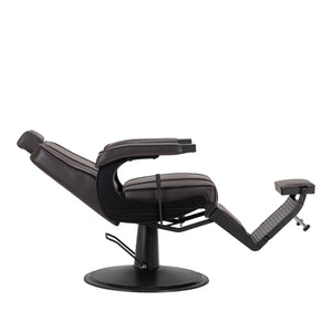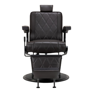 The chair's solid round base construction ensures stability and excellent user comfort. The seat filling, made of deformation-resistant foam, and the upholstery crafted from soft-touch synthetic leather with a matte finish ensure long-lasting durability and comfort during prolonged use. Stylish stitching on the upholstery adds character, evoking automotive design inspirations that enhance its elegant appearance. This feature also makes the chair moisture-resistant, durable, and easy to clean. The upholstery in brown tones gives the chair a unique character, and its minimalist style allows it to blend seamlessly with the decor of any barbershop.