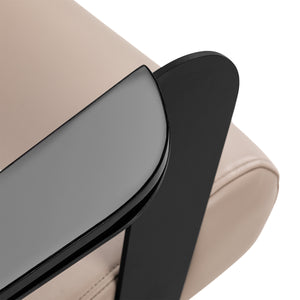 Istuin on täytetty kestävällä, muodonmuutoksia hylkivällä vaahdolla ja verhoiltu synteettisellä nahalla, mikä takaa mukavuuden ja pitkän käyttöiän. Materiaalit ovat kosteutta hylkiviä, helposti puhdistettavia ja soveltuvat intensiiviseen käyttöön kampaamo-olosuhteissa. Beige verhoilu antaa tuolille elegantin, ajattoman luonteen, joka sointuu mustiin rakenneosiin. Moderni muotoilu tekee Hair System Jet -kampaamotuolista esteettisen ja toiminnallisen varusteen ammattitason kampaamoihin.