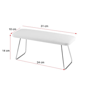 professional manicure support # 1 is a classic palm rest. the upholstery is made of eco-leather and the legs are made of chrome-plated steel. the appropriate height of the support ensures a comfortable position for both the client and the stylist. the stylist does not slouch and holds herself straight, thanks to which the pain in the spine will be alleviated.