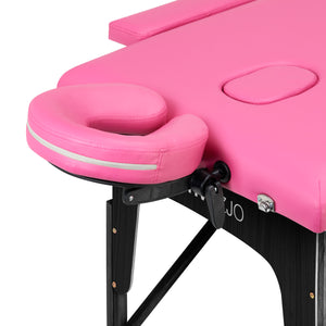The Activ Fizjo Komfort folding wooden massage table is a two-segment model with upholstery in shades of pink, which is perfect for a massage parlour or physiotherapist, as well as many other specialist practices. The product does not take up much space, and with the possibility of easy and quick assembly, the relative lightness of the structure and the matching bag included in the set, it is also a great choice for mobile services.