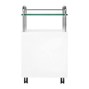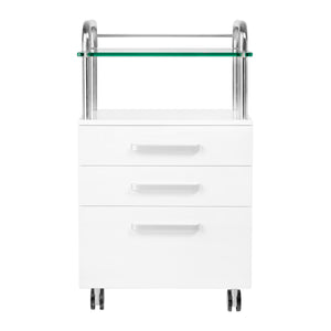 A high-quality podiatry helper is a functional cosmetic piece of furniture on wheels. Thanks to your mobility, you can transport it to other treatment rooms. The assistant has a glass worktop, three drawers for tools, accessories and a shelf for a podiatry milling machine or other device.