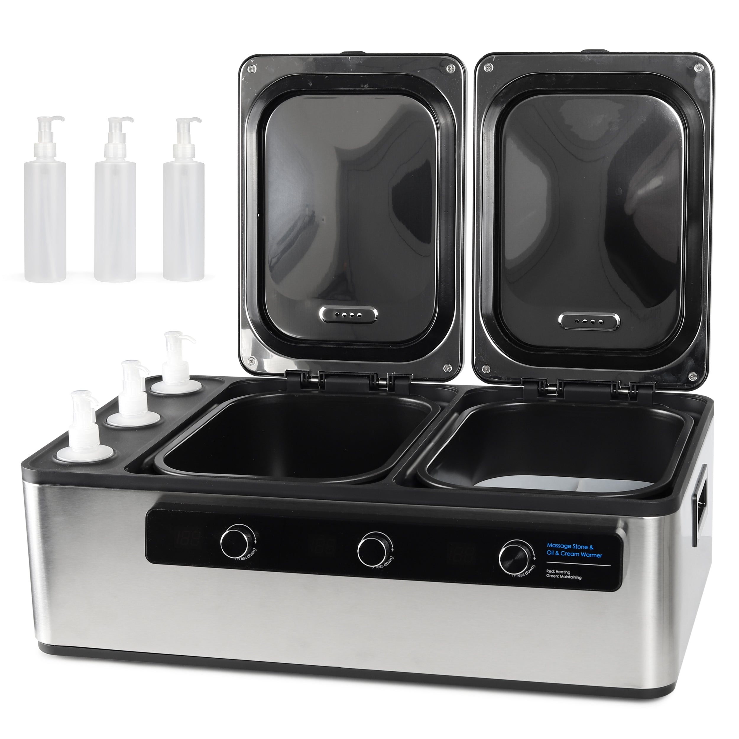 The multifunctional stone and oil heater is designed for professional massage studios, beauty salons, and spas. It provides excellent support for comprehensive relaxation and therapeutic treatments.