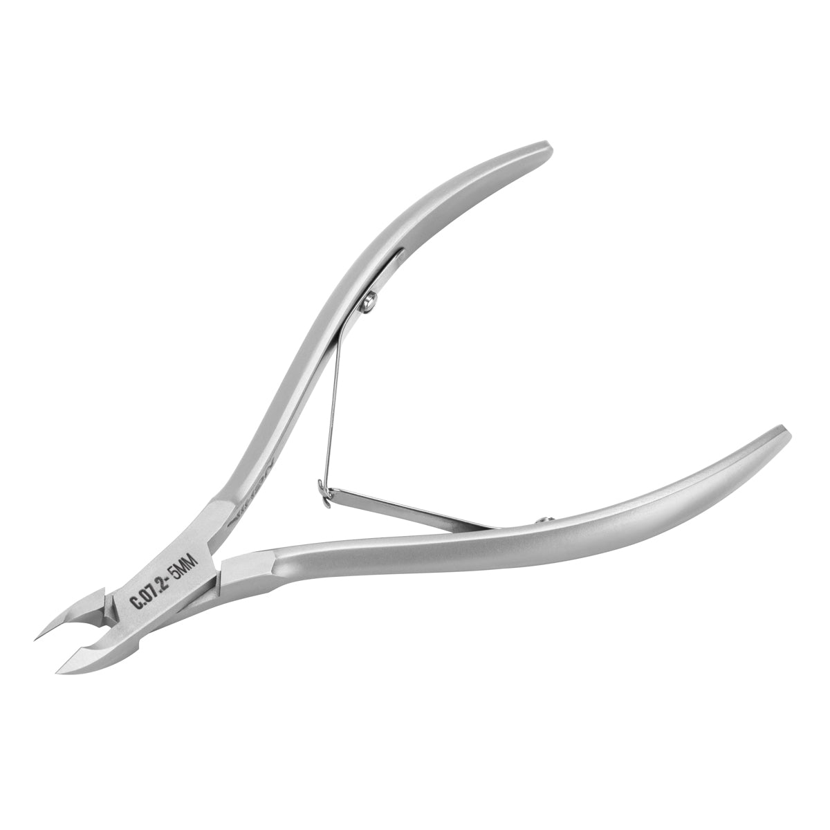 The nippers are designed for easy and safe cuticle removal. Their ergonomic shape provides a comfortable grip, while the extremely sharp blades allow for precise cutting without the risk of damaging the skin. Made from high-quality stainless steel, they are corrosion-resistant and easy to disinfect. The double-sided hoof is a versatile tool that allows both gentle pushing back of cuticles and their effective removal. One tip is a rounded pusher, ideal for shaping and pushing back cuticles without irritation. On the other side is the tip in the form of a bevelled triangular cutter, which allows you to precisely remove stubborn, keratinised sections of the epidermis.