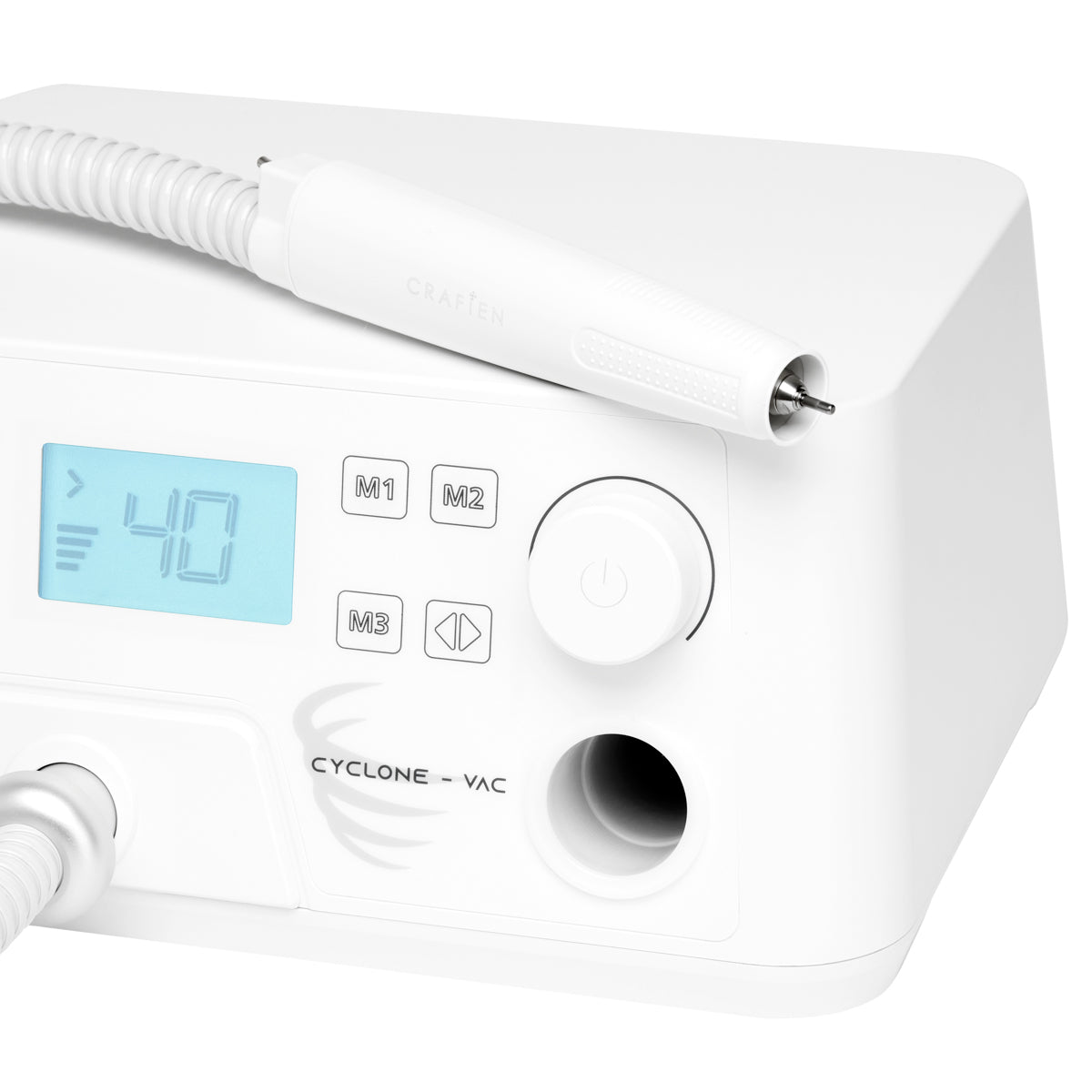 Adequate lung protection is the key to responsible and safe work of a podiatrist and maintaining high hygiene standards in the practice. The high suction power of the device makes it perfect for absorbing any dust generated during treatments. It is also possible to adjust the absorption on five levels and, if necessary, to turn off this function.