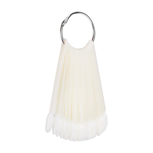 The nail stencil in a milky color allows you to aesthetically present all colors of classic and hybrid varnishes or gels. It consists of 50 individual tips of oval shape and size corresponding to real nails. It is fastened with a practical, detachable wheel, which makes it easy to store the whole thing. Each tip is made of durable plastic.