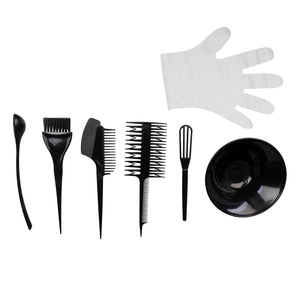 professional set of hair dye tools. the kit includes all the necessary tools. 1 mixing bowl, 1 measuring spoon, 1 stirrer, 2 paint combs, 1 paint brush, 1 pack of 100 disposable gloves, these products will make your hair coloring easy. suitable for professional hairdressing in the salon.