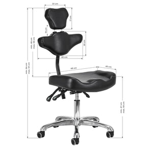 Choosing the right chair for a tattoo parlor is crucial for ergonomic and comfortable work. Thanks to its wide adjustability, the 973 model will allow you to relieve the spine during long hours of sessions. With the help of a hydraulic actuator, the seat height can be smoothly adjusted in the range of 47-59 cm, allowing you to comfortably perform all kinds of procedures. Important features include backrest tilt adjustment, seat angle adjustment and the ability to lock the selected position, all of which significantly improve stability during tattooing, work ergonomics and service efficiency.