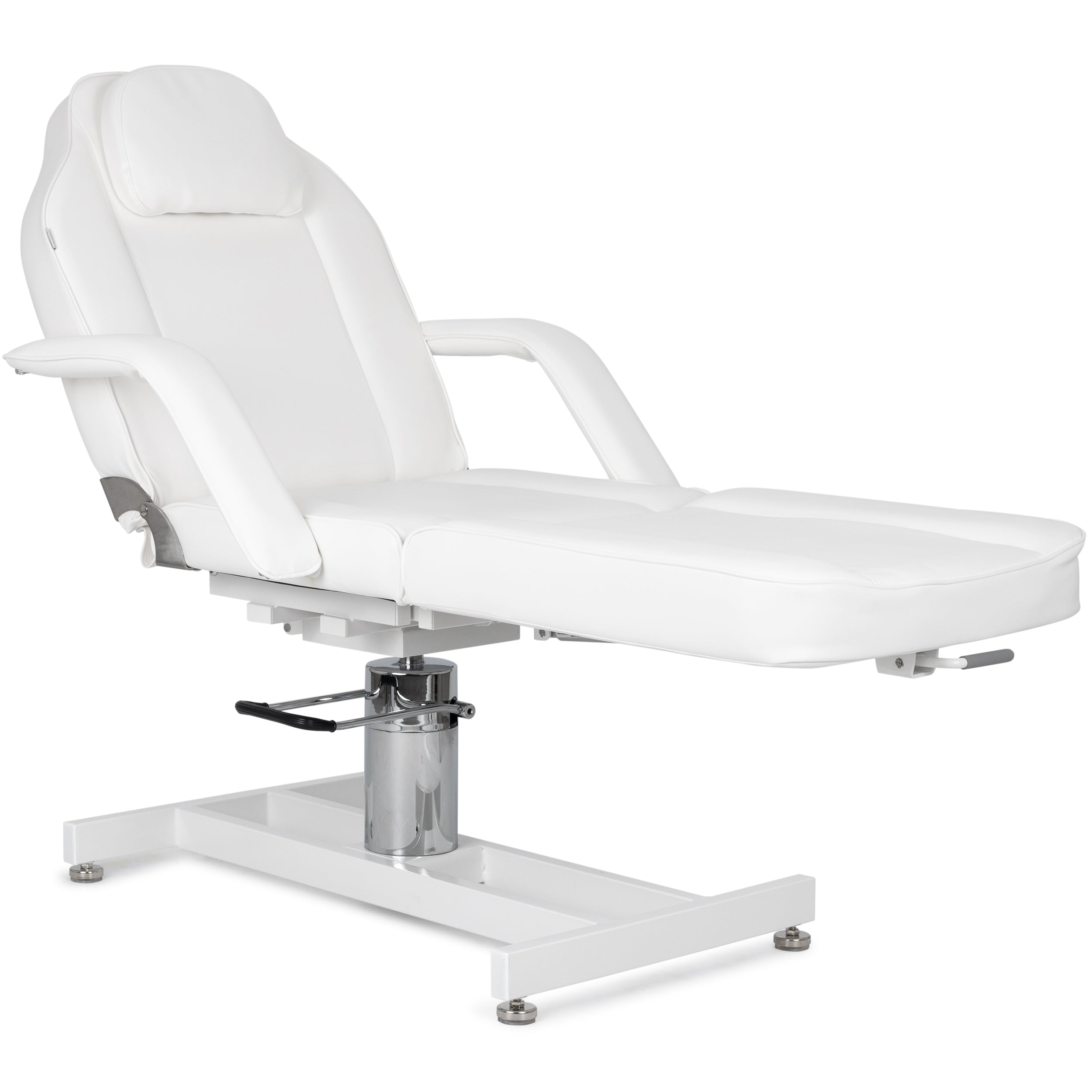 Hydraulic height adjustment: Easily adjust the chair’s height (61–77 cm) with a foot-operated pump to suit the height of the professional and type of treatment.