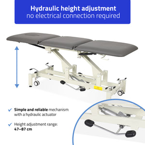 Ultima H3 therapy table, hydraulic adjustment, wheels, PVC gray