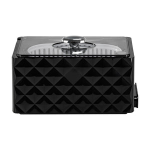 The small dimensions make this ultrasonic cleaner very easy to transport, and additionally it does not take up too much space in the salon. The aesthetically pleasing, decorated housing is made of plastic in shades of black, and the transparent lid allows you to observe the process on an ongoing basis and does not make it difficult to turn on the device, even though the button is hidden under it. The inside of the container is marked with a maximum liquid fill mark (up to 300 ml). The stability of the device is ensured by non-slip feet.