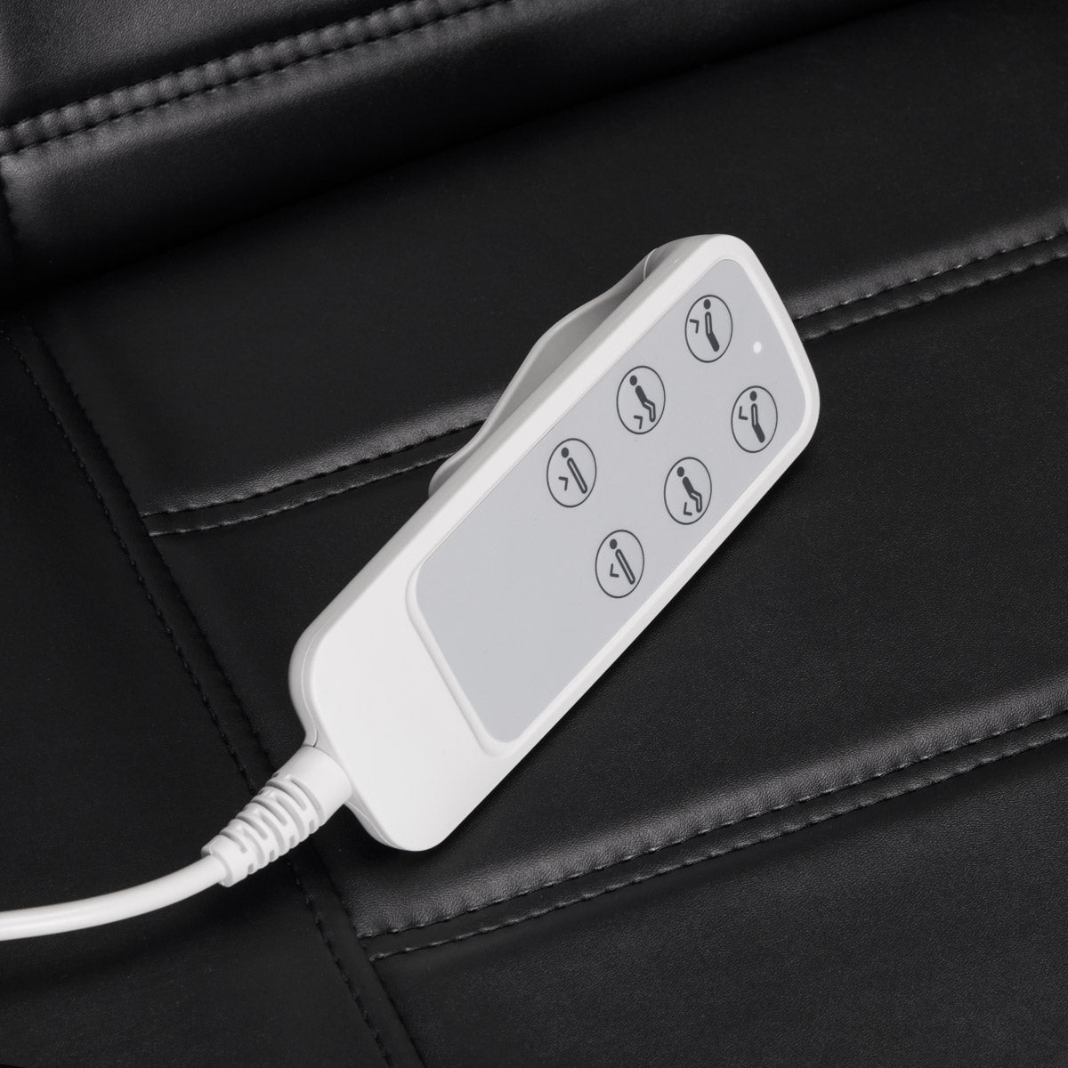 The height of the seat is adjustable from 65 cm to 84 cm, and when fully extended the chair reaches a length of over 2 meters. These dimensions allow the equipment to be easily used by people of different heights and make it adaptable to the needs of both the client and the person performing the procedure. On the right side of the seat a special metal holder for hanging the remote control has been installed, which greatly facilitates its storage and makes it always at hand.