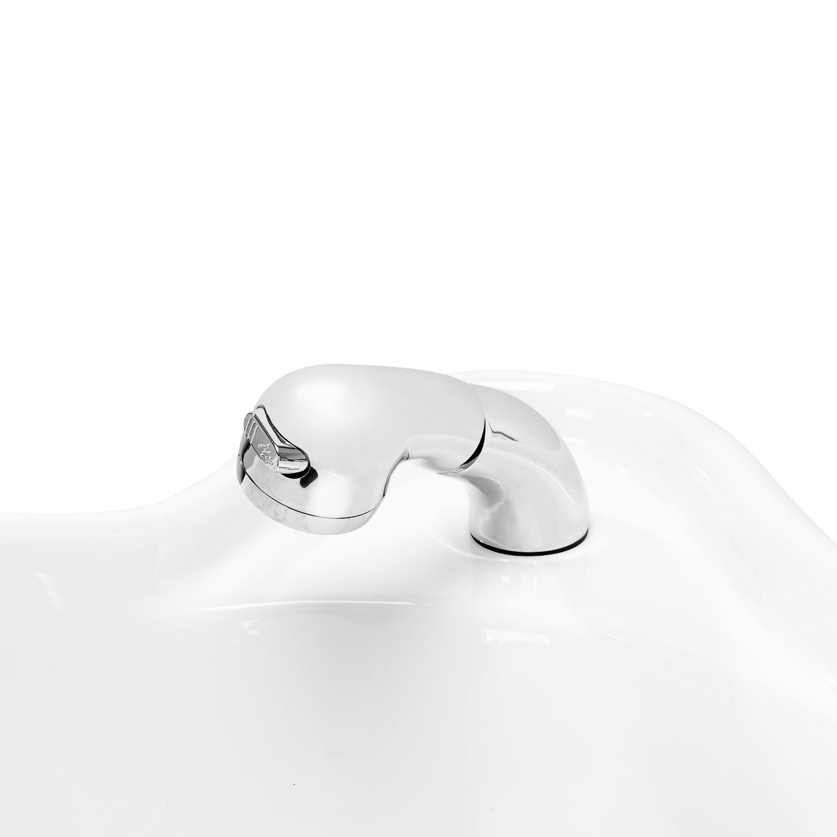 The depth of the ceramic washbasin bowl in shades of white allows for comfortable and effective performance of a wide range of hairdressing services, preventing excessive splashing of water and products used during the treatment. The material used makes the washbasin durable, resistant to discoloration and scratches, and very easy to keep clean. A properly profiled collar provides comfort during hair washing. The use of a special support in the bowl guarantees proper support for the head, so that its weight does not rest on the neck. The innovative solution prevents tension and discomfort in the neck area and ensures high comfort, even during long treatments. Additionally, thanks to the comfortable black plastic overlay, the customer will not feel the unpleasantness of the cold ceramic surface.