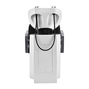 The practical hair wash unit is equipped with a mixer faucet, which provides easy access to hot and cold water. This makes it easier to adjust the temperature to the customer's individual preferences. A dedicated place to hang up the handset makes work easier, and the chrome-plated plug with a special strainer allows you to control the water flow and maintain high hygiene standards in the salon. The water connection has been placed inside the base, allowing the pipes to be easily hidden. A significant advantage of this model is the opening left between the backrest and the seat, which makes it easier to keep the living room clean by allowing you to easily sweep dirt from every nook and cranny of the chair. The hair wash unit has been designed in such a way as to ensure comfort during various treatments, ensuring proper back support. The combination of functionality and amenities makes working in a hairdressing salon even more comfortable.