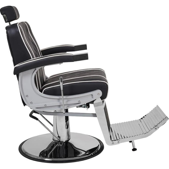 Borg barber chair The BORG chair is a unique blend of classic elegance and modern design – perfect for both stylized and minimalist barbershop interiors. Its carefully contoured backrest and wide seat ensure high comfort, even during longer treatments. Black upholstery