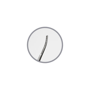 The mini angled file is designed for nail edge leveling or nail reconstruction. It is even suitable for leveling ingrown nails in hard-to-reach areas. In addition, the file can be used for the application of adhesive clamps. The tool has two different tips - one straight and the other slightly rounded. The file has a very comfortable handle and a practical compact size. The product is made of high-quality stainless steel and is suitable for autoclave sterilization.