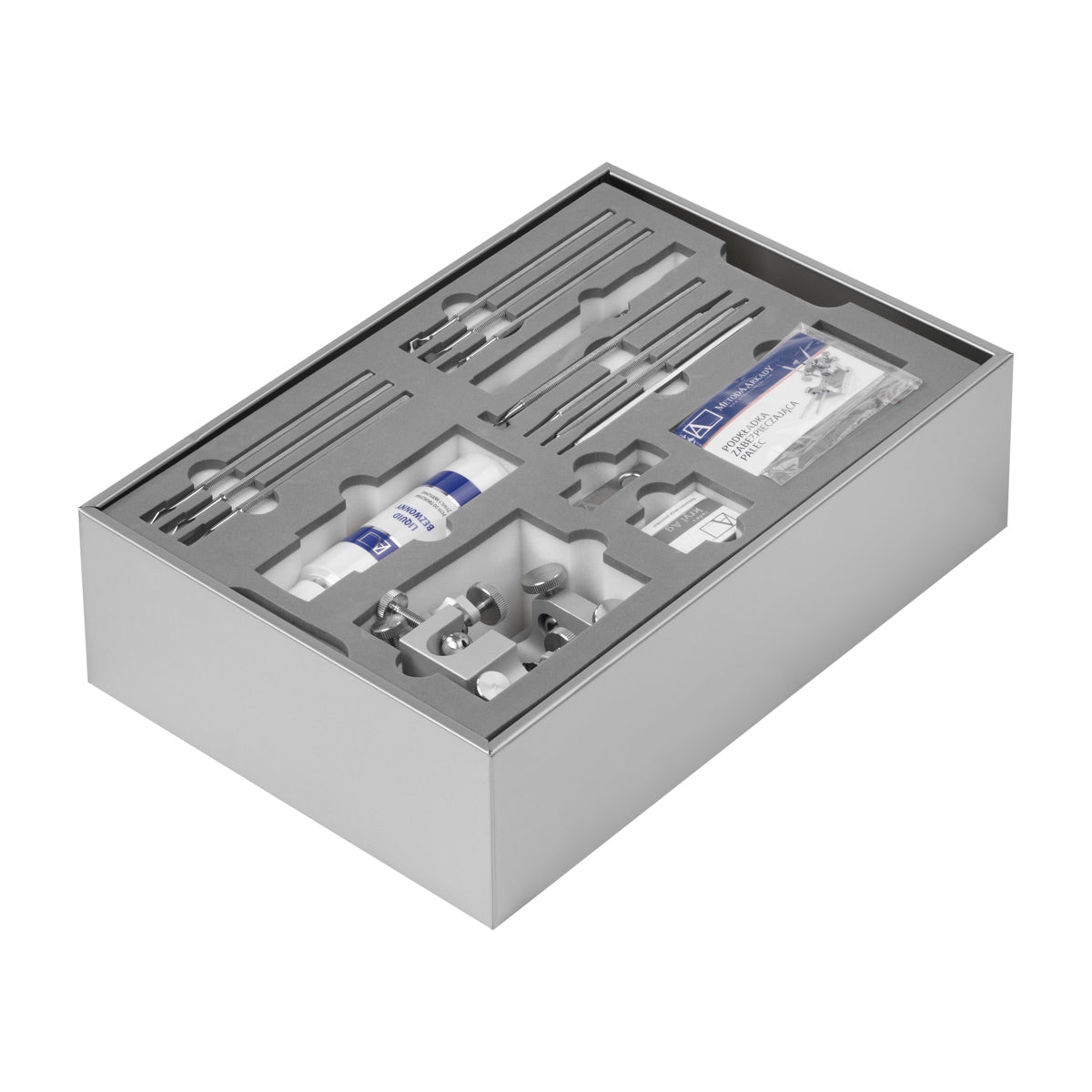 the manufacturer recommends starting with the purchase of the set in each case, which does not exclude the possibility of making an appointment with the trainer at the same time. several consecutive treatments. the tool body itself does not have to be inserted into the autoclave each time because it acts as a liner and it is enough to disinfect it. Only the manipulators and the balls through which the manipulators are inserted have direct contact with the nail plate.