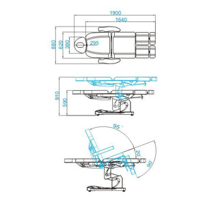 sähköinen hoitopöytä, ihanteellinen kauneushoitoloihin ja kylpylöihin. Erillisten moottoreiden ansiosta voit säätää tuolia kolmeen suuntaan kaukosäätimellä ja manuaalisilla jalkatuilla, mikä mahdollistaa monipuoliset kasvo- ja vartalohoidot. Kaukosäätimellä voidaan säätää tuolin korkeutta, selkänojan kaltevuutta sekä asettaa istuin keinuasentoon.