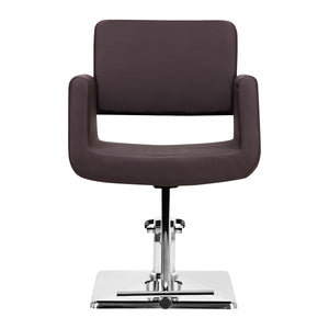 Vankka, neliönmuotoinen pohja varmistaa vakauden käytön aikana, kun taas sen kiillotettu, sileä pinta antaa elegantin ulkonäön. Kestävällä ja muodonmuutoksia hylkivällä vaahtomuovilla täytetty istuin, joka on verhoiltu miellyttävän tuntuisella synteettisellä nahalla, on kestävä, kosteutta hylkivä ja helppo puhdistaa. Tyylikäs ruskea väri korostaa ajatonta muotoilua, joka sopii harmonisesti sekä moderneihin että perinteisiin kampaamoihin.